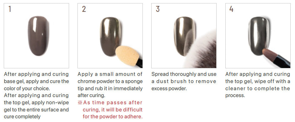 Fine powder particles that can be easily rubbed to create a mirror-like luster. Chrome Powder. |